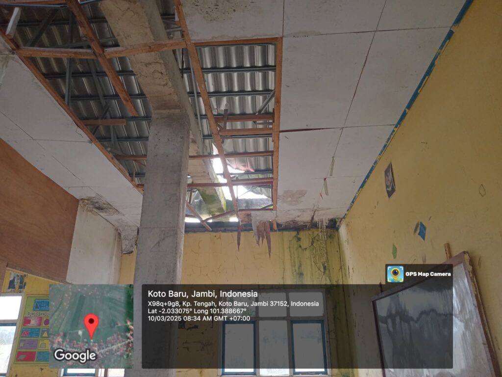 “Dulu pernah ada proyek perbaikan, tapi hanya sampai mendirikan tiang. Setelah itu, tidak tahu kenapa berhenti dan dibiarkan begitu saja. Sekarang kalau hujan, air masuk ke kelas, anak-anak terpaksa libur karena banjir,” ujar Majelis Guru.